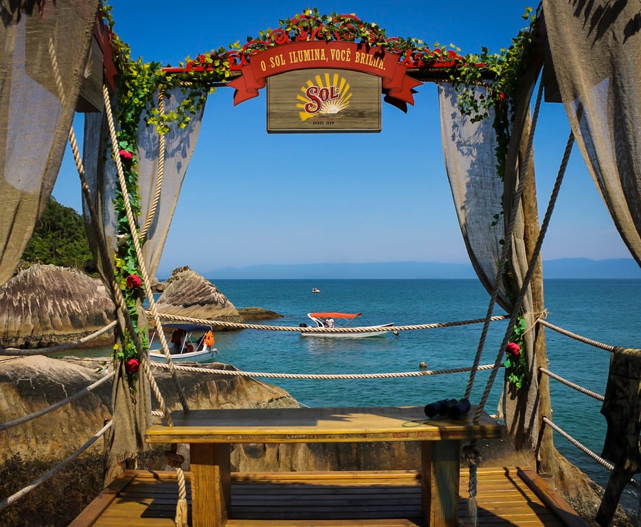 As Ilhas — Parada mais longa em uma praia de águas claras e mar tranquilo, com bares e serviço de praia. Desembarque seguro próximo à areia para relaxar e aproveitar o visual. (aprox. 1h)