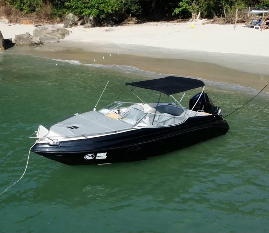 A bordo de uma lancha super premium — Black Shark, você e seu grupo vivem um dia especial, com navegação segura, paisagens incríveis e paradas perfeitas para banho, mergulho e relaxamento.